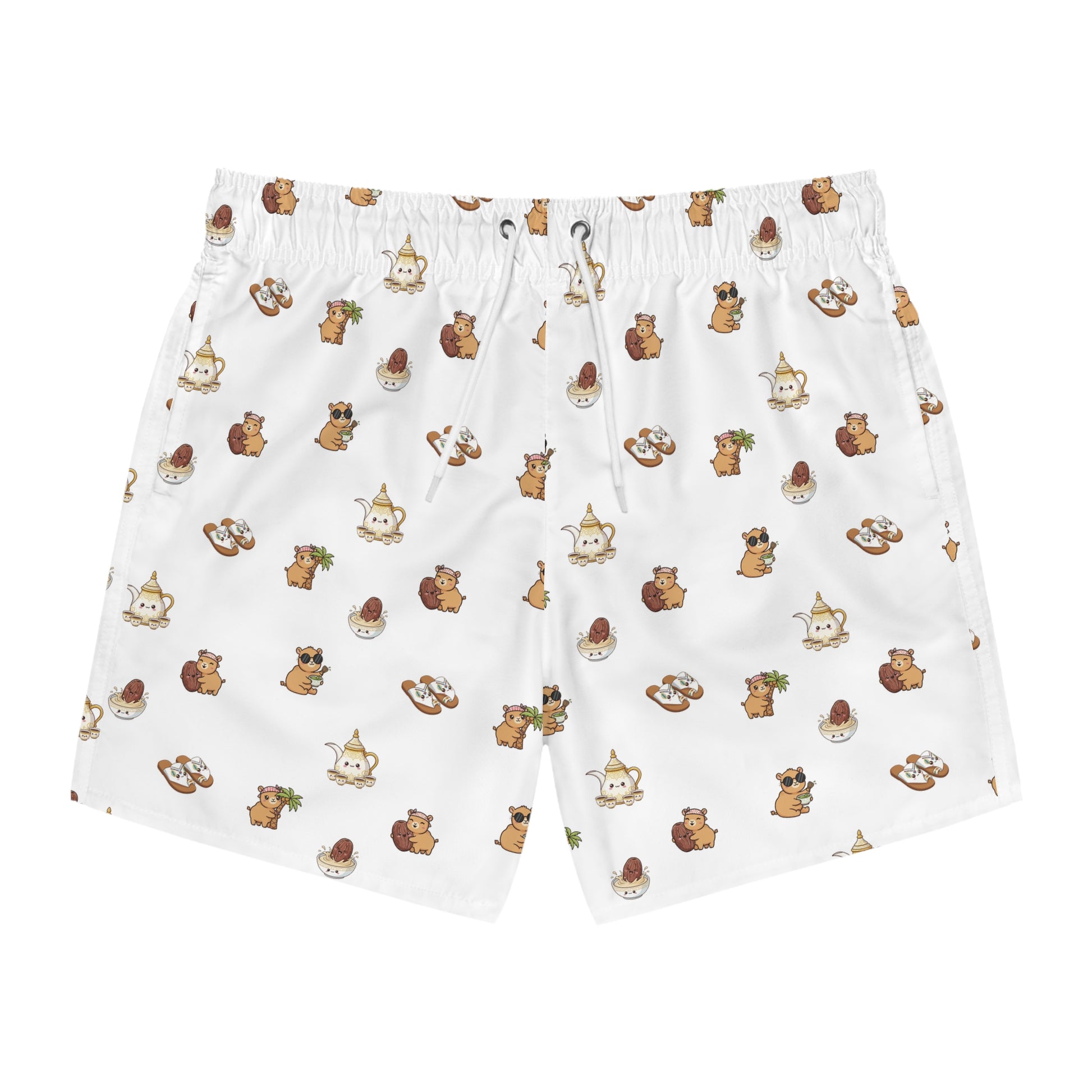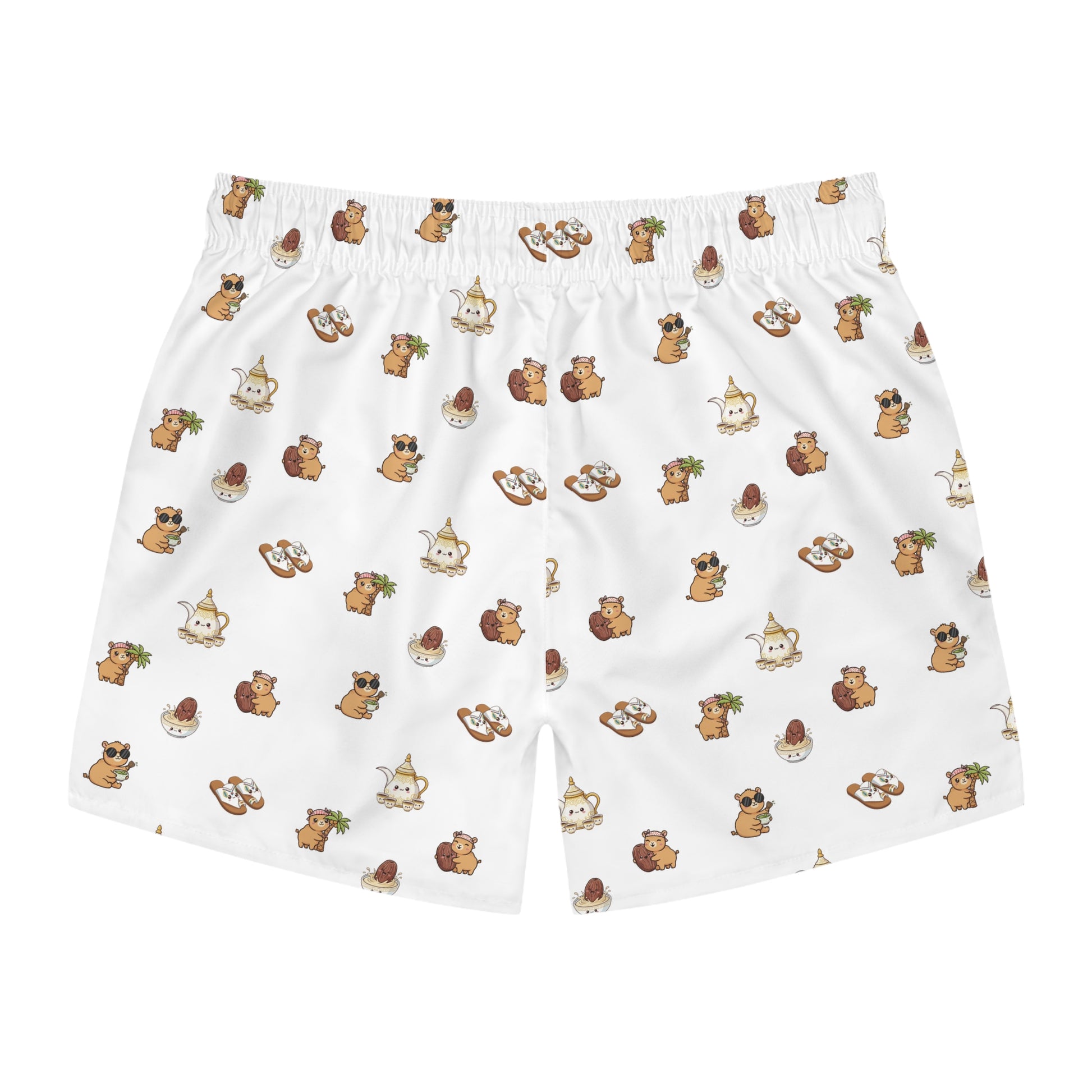 Introducing our vibrant Swim Trunks, perfect for beach days, pool parties, or sunny vacations! The playful design, featuring adorable Arabian kawaii characters enjoying summer, brings a fun and carefree vibe that makes every dip in the water a joyful experience. Crafted from 100% polyester, these trunks are not only stylish but also highly functional, ensuring you stay comfortable and dry after your swim.