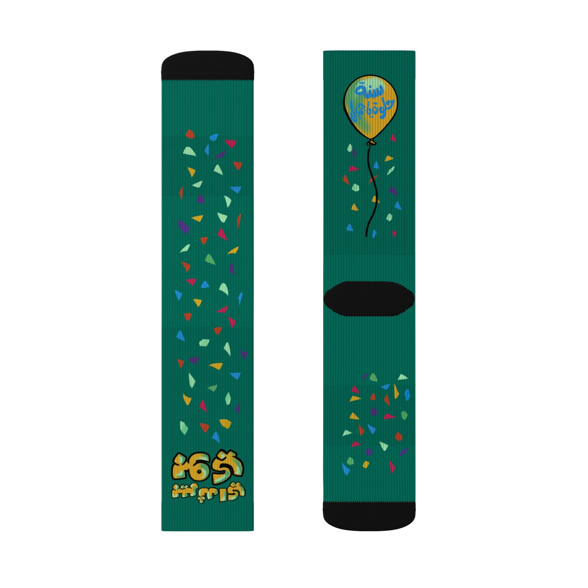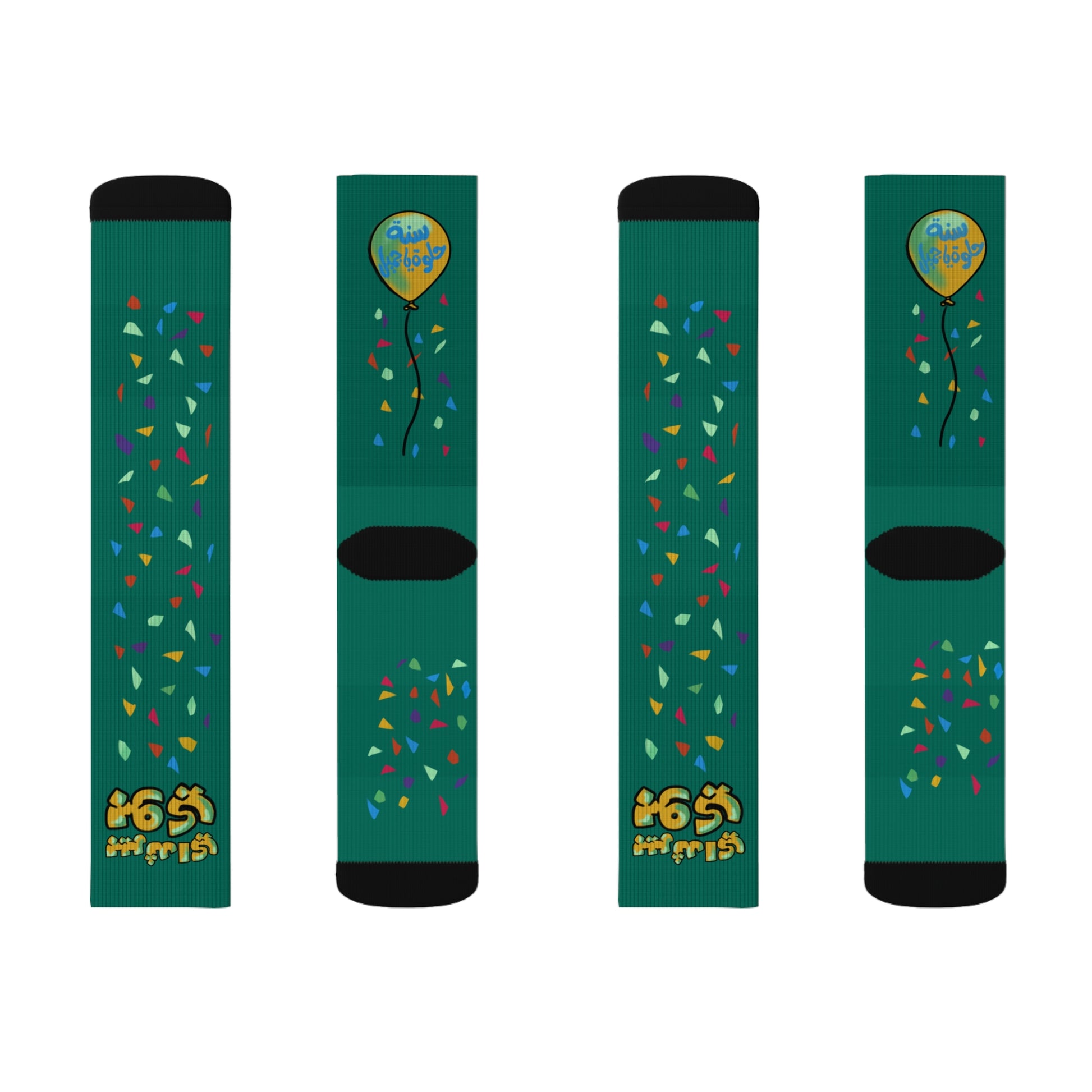 Step into comfort and style with these vibrant crew socks, designed to elevate your everyday wear. The unique and eye-catching prints add a playful touch, perfect for showcasing your personality. Made from a lightweight, durable blend of materials, these socks provide a snug fit while keeping your feet cozy. The message is simple: Happy Birthday! We suggest wearing all birth month, because why not?