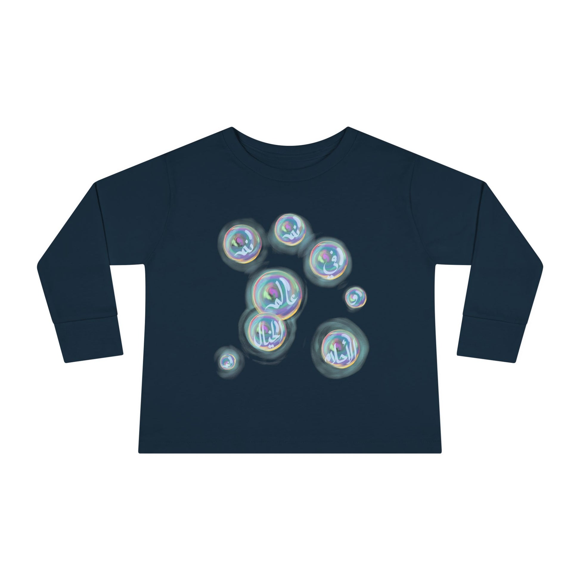 This charming toddler long sleeve tee is perfect for little ones who love cozy moments. Its whimsical design of floating bubbles is perfect for bed time fun. Designed for toddlers, this tee embraces a unisex fit, ensuring every little one can enjoy its cozy vibe.