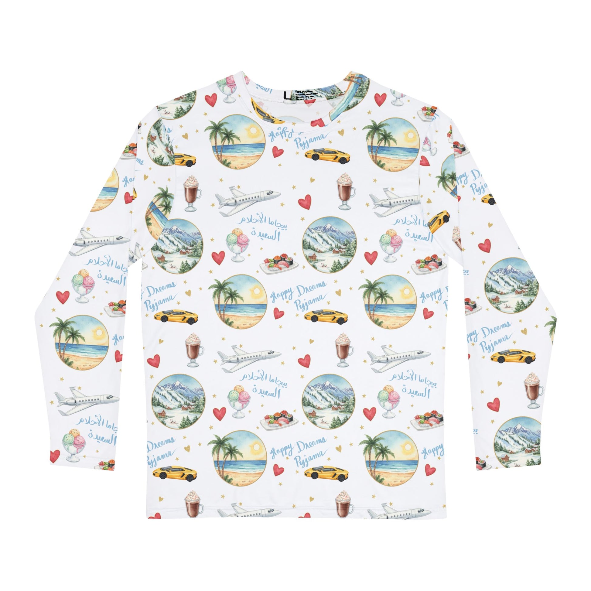 Elevate your wardrobe with this vibrant Men's Long Sleeve Pyjama Top. Adorned with playful patterns reminiscent of sunny beach days and fun adventures, it brings a lighthearted vibe to your next Pyjama party.