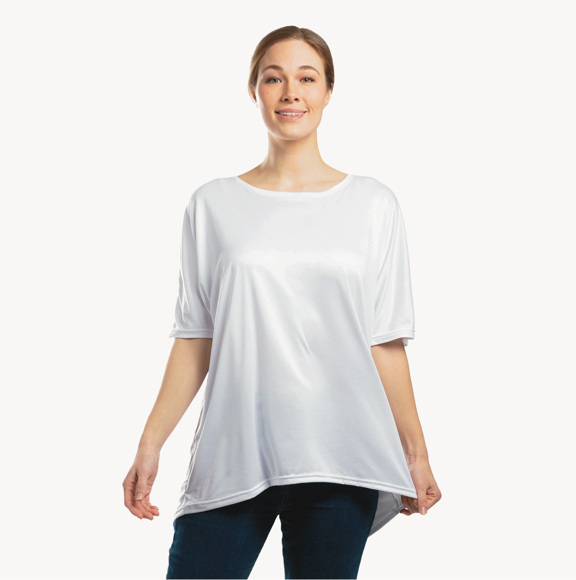Celebrate your joy with this layered calligraphy design. Our comfort dolman shirt features a wide neck and oversized fit that is ideal for lounging in style. Side seams, generous curved hem and seamless sleeves set this garment apart.
