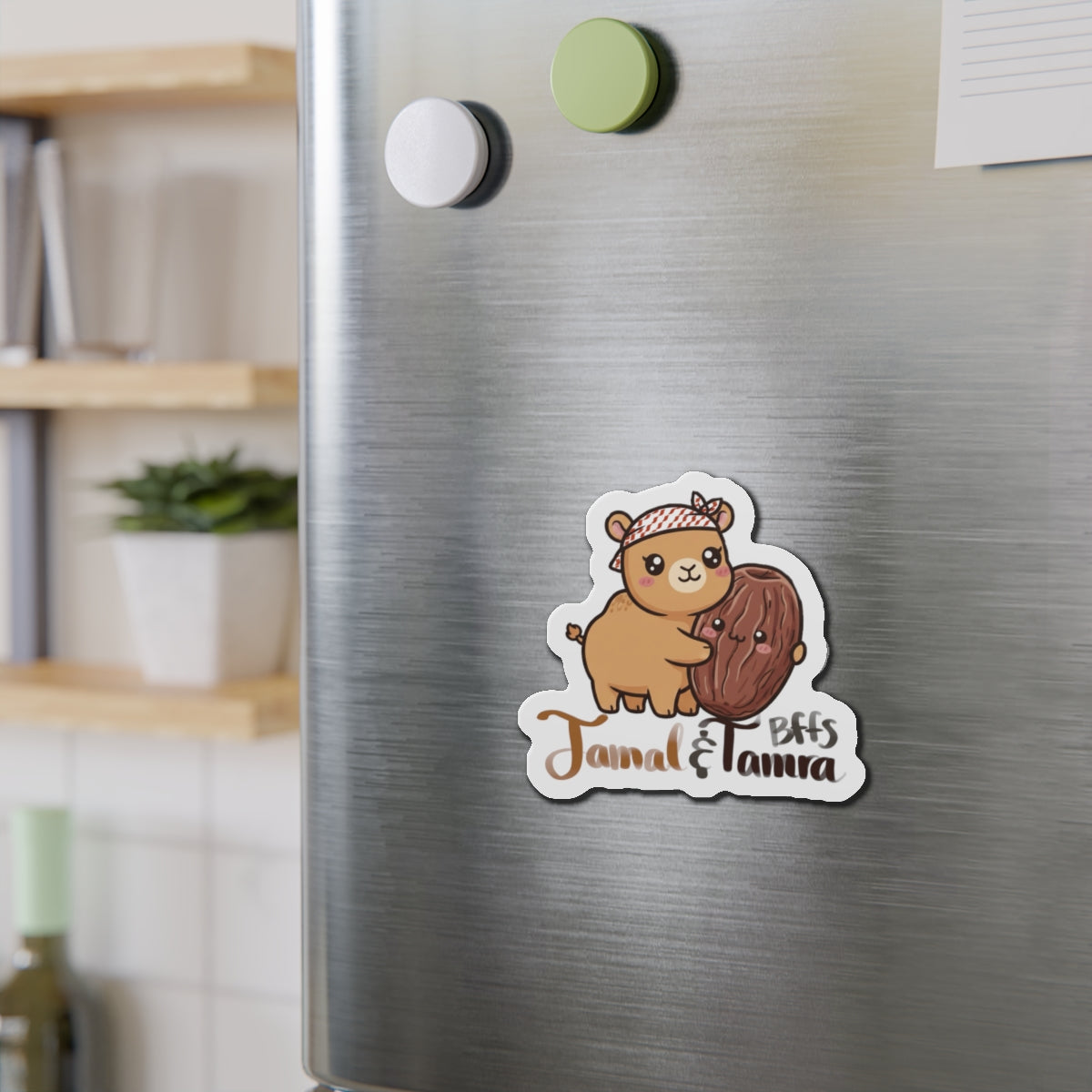 Add a touch of Kawaii to your space with these charming die-cut magnets! Featuring a cute camel hugging a date, add joy to your environment with the two most famous symbols of Arabia. Perfect for gifting during holidays like birthdays, back-to-school season, or just as a thoughtful surprise!