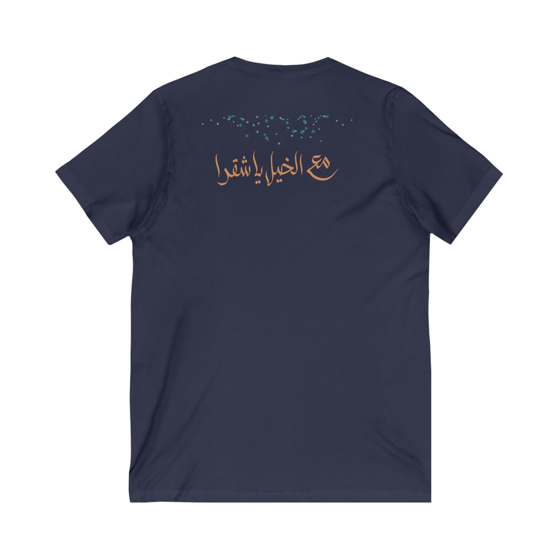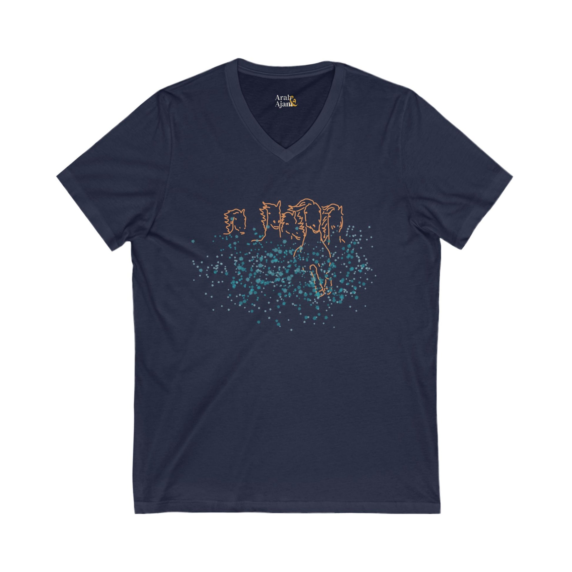 Elevate your wardrobe with this stylish Unisex V-neck Tee. Perfect for repping your tribe wherever you go. The lightweight fabric drapes beautifully, making it a go-to choice for any season. With its trendy V-neckline and retail fit, it flatters all body types, adding a touch of contemporary flair to your look.