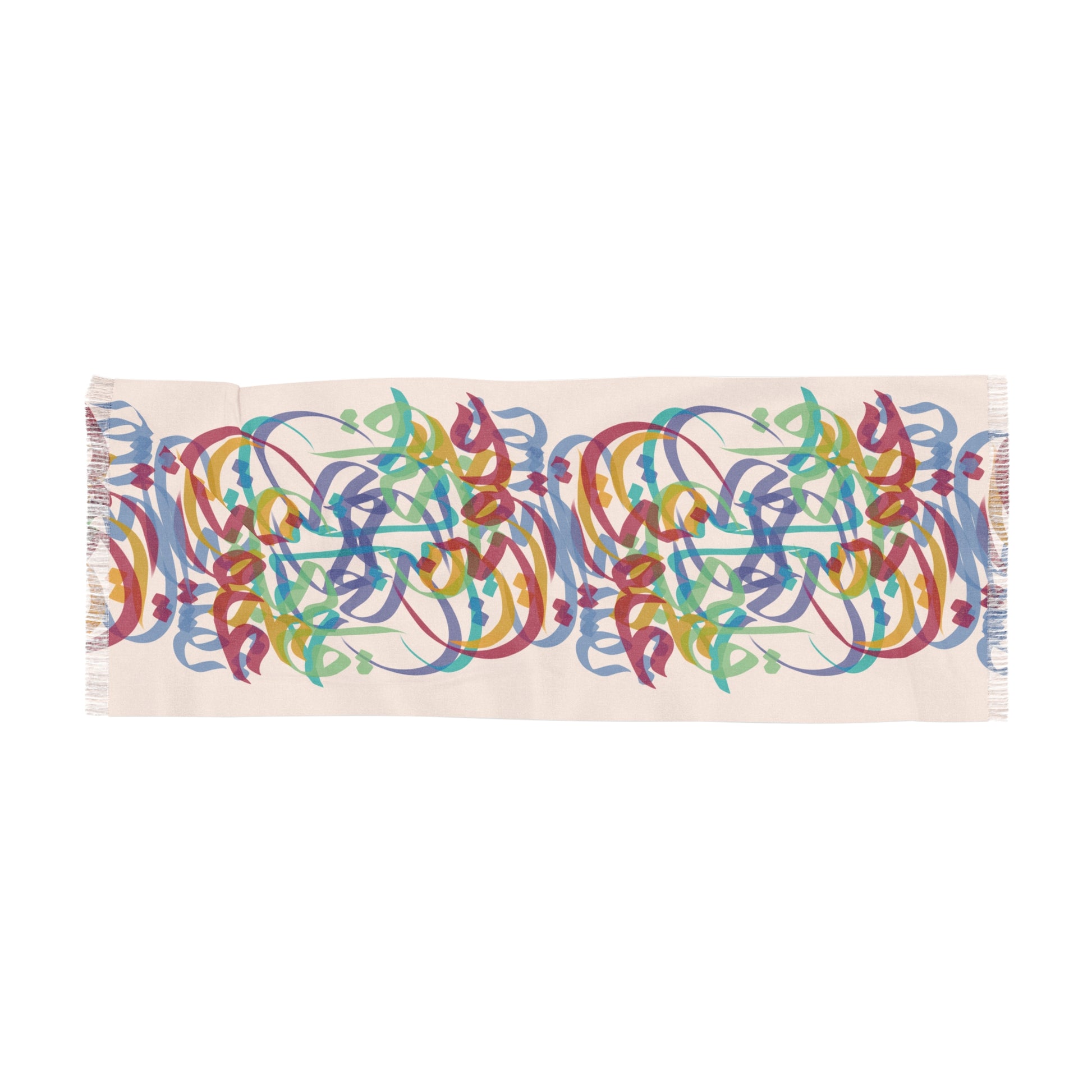 Embrace this artistic calligraphy design and elevate your accessory game with this beautiful Light Scarf. Layered with words of Love and adoration, this scarf is a vibrant reflection of its wearer. Made with a soft, lightweight polyester fabric, it adds a touch of elegance and vibrancy to any outfit. The scarf features stunning semi-translucent prints that subtly show through, creating a delicate and artistic vibe. Perfect for layering in cooler weather or as a statement piece in warmer climates, this scarf is a versatile addition to your wardrobe.