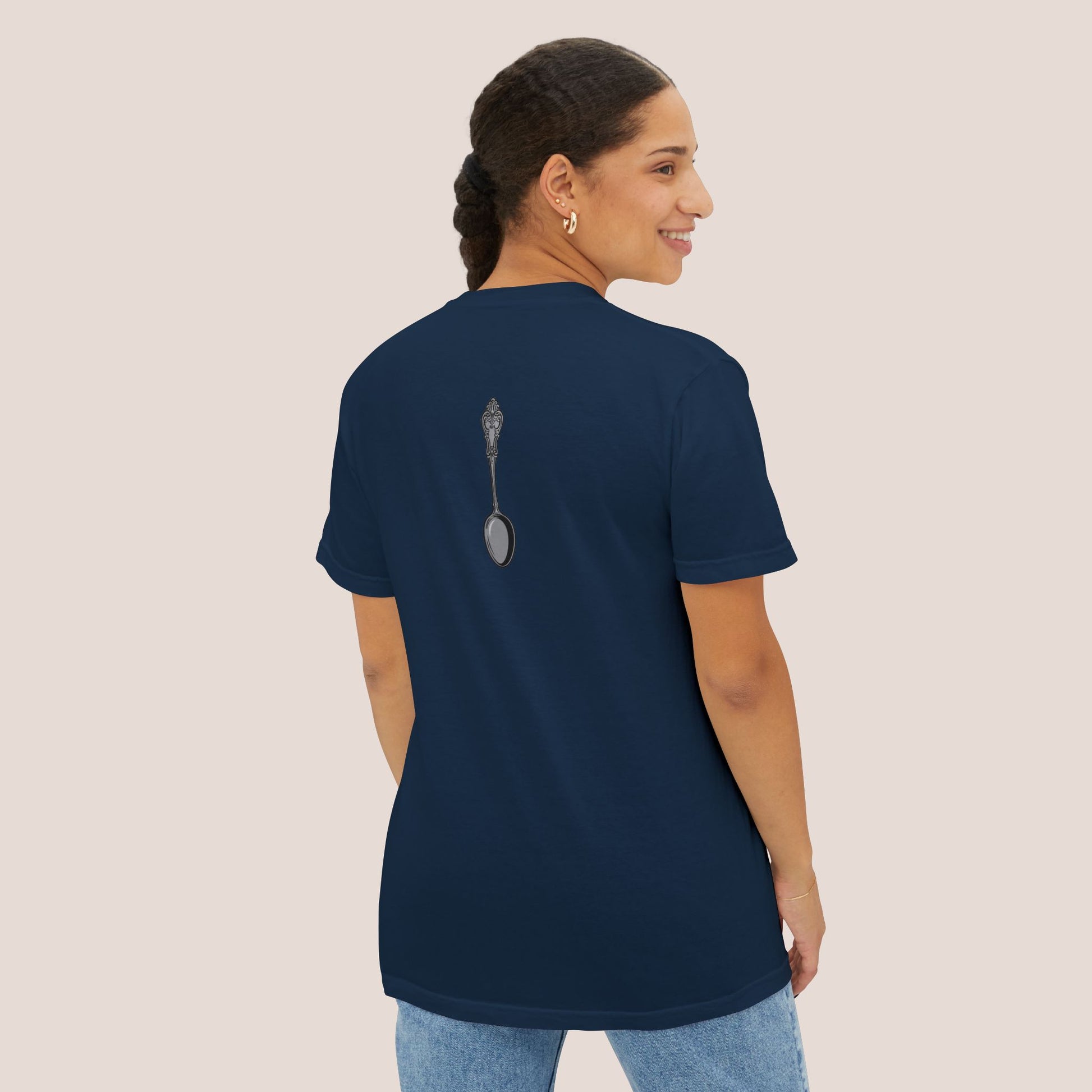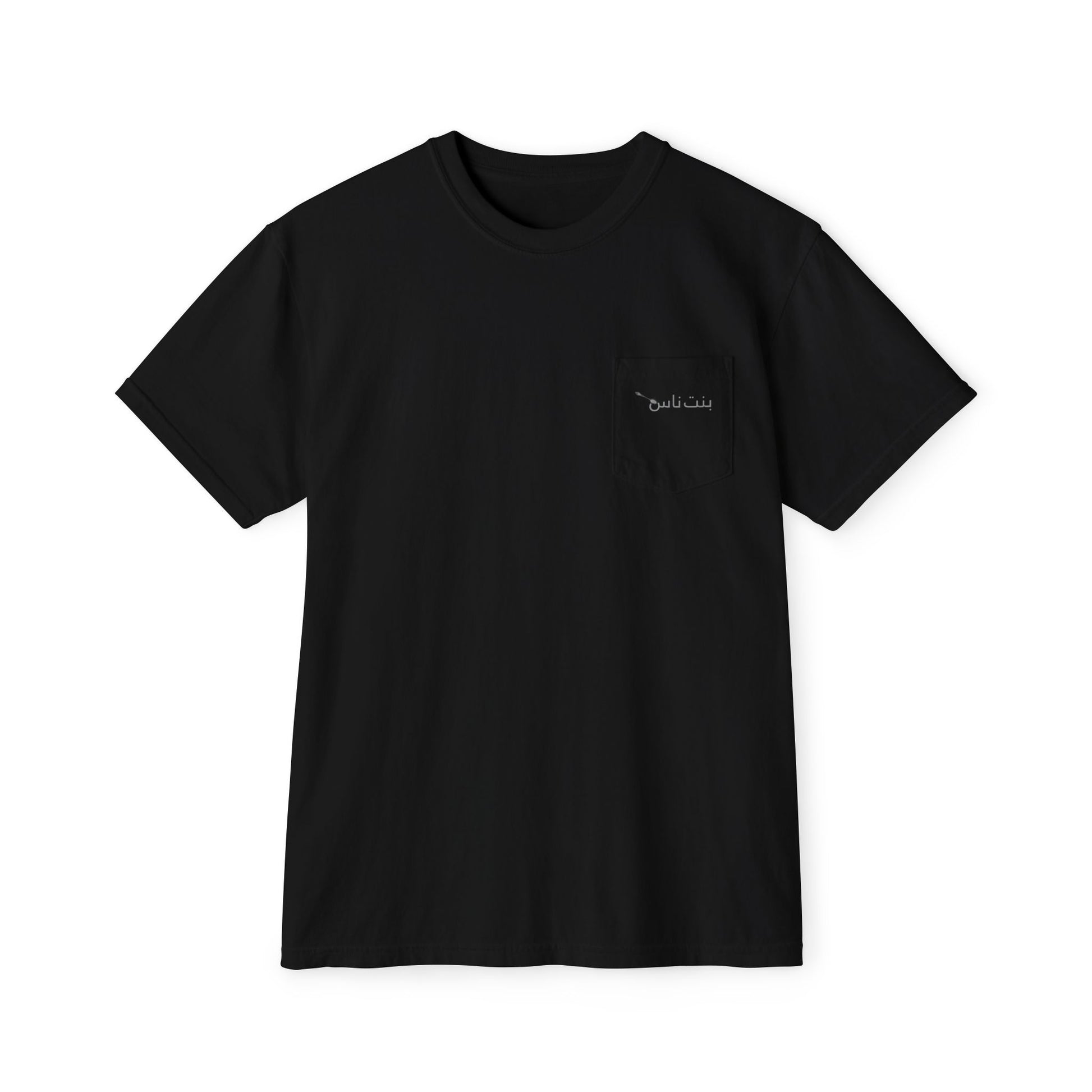 Elevate your casual wardrobe with this A&A Silver Spoon Tee. The Arabic text on the pocket says "Daughter of People", meaning they come from a "good" family. Hence the silver spoon. Fancy.